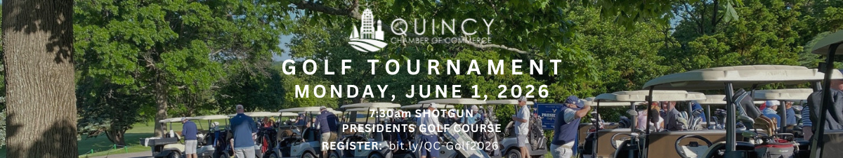Save the date for Monday, June 1st for our 2026 Quincy Chamber Golf Tournament at Presidents Golf Course! Shotgun start at 7:30am (registration check-in will open at 6:30am- assorted muffins, bagels, breakfast sandwiches & coffee available). Following golf, a BBQ lunch will be served along with announcing the contest winners and raffles!