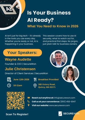 SecureWon is hosting an official ribbon cutting ceremony with Quincy Chamber of Commerce, Mayor Tom Koch, and local business leaders, introducing our new location and strengthening community ties. The event will conclude with a networking reception on the boardwalk, featuring live music, food, and drinks to engage prospects, clients, and partners in a relationship-building environment.
